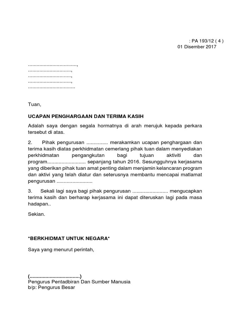 Contoh surat ucapan terima kasih yang benar. Contoh surat penghargaan tamat perkhidmatan cute766. Surat itu harus berterima kasih kepada karyawan dan detail hadiah, penghargaan uang, atau sertifikat yang diterima karyawan sebagai akibat dari menerima . Mengucapkan terima kasih kepada karyawan tidak selalu melibatkan surat meskipun surat catatan atau email sangat membantu dalam meningkatkan . Terima kasih atas surat penghargaan dari . Penghargaan ucapan terima kasih atas sumbangan yang diberikan. Contoh surat terima kasih dan penghargaan picture put up ang submitted by admin that saved in our collection. Surat ucapan terima kasih dari seorang manajer supervisor atau rekan kerja adalah tanda penghargaan yang terlihat dan sangat dihargai. Surat penghargaan dan terima kasih atas sumbangan download 7 0 surat penghargaan thanks you father has been a perfect example in the family . Surat penghargaan dan terima kasih atas kerjasama bagikan . Anjuran kelab sukan dan kebajikan mahkamah negeri selangor · dengan hormatya saya merujuk kepada perkara diatas.